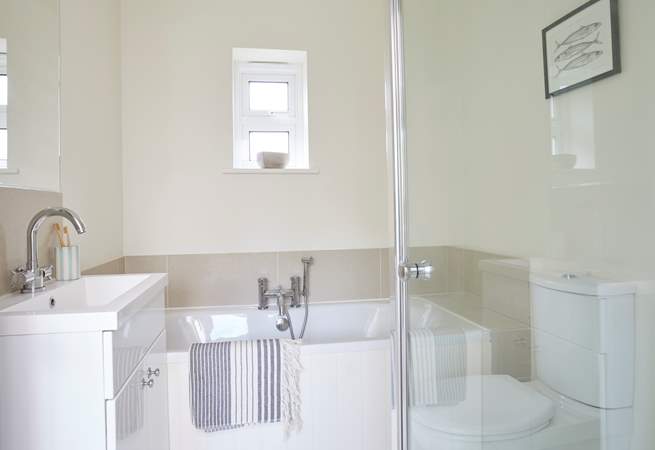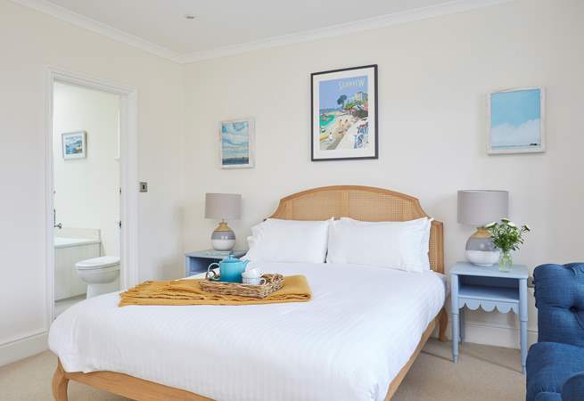 1x double bedroom with king-size double bed (5') and en suite Bathroom with bath, shower cubicle, WC and double wash-basin